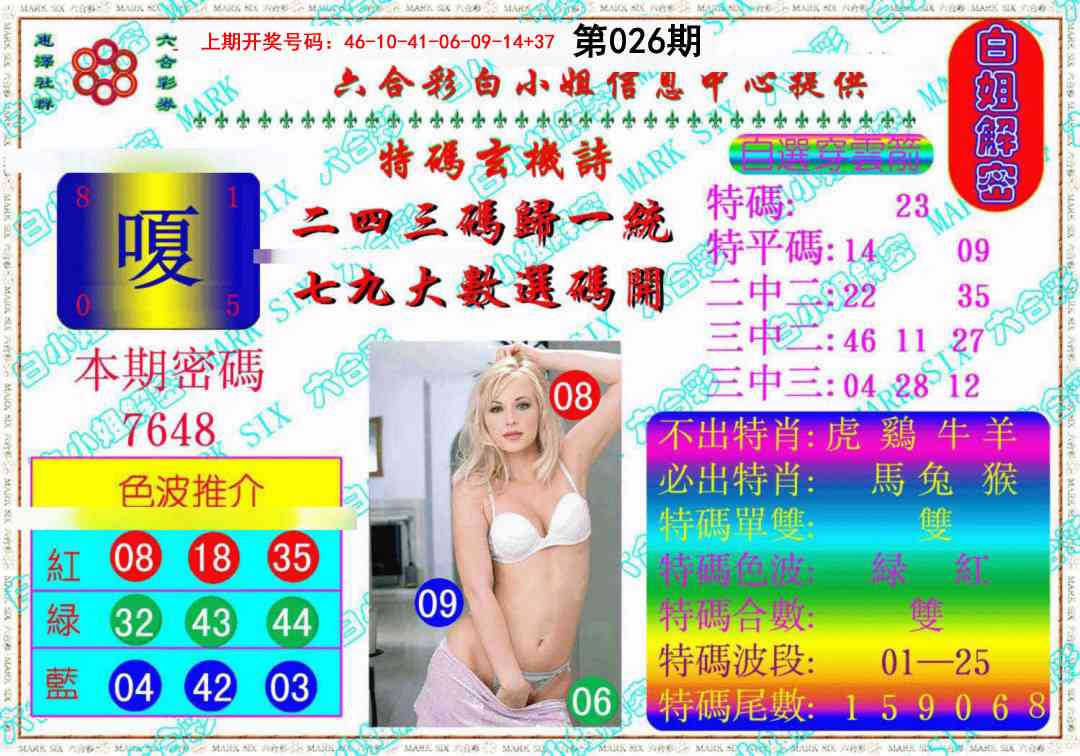 026期单:鸡牛猪兔 双:龙马猴虎开:?00中 |